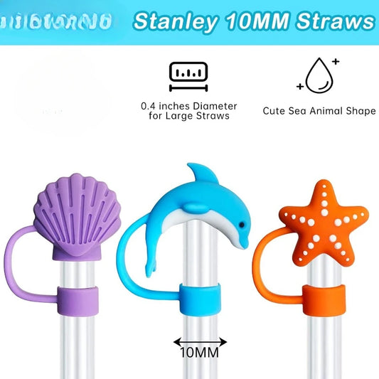 6PCS, Silicone Sea Animal Straw Topper